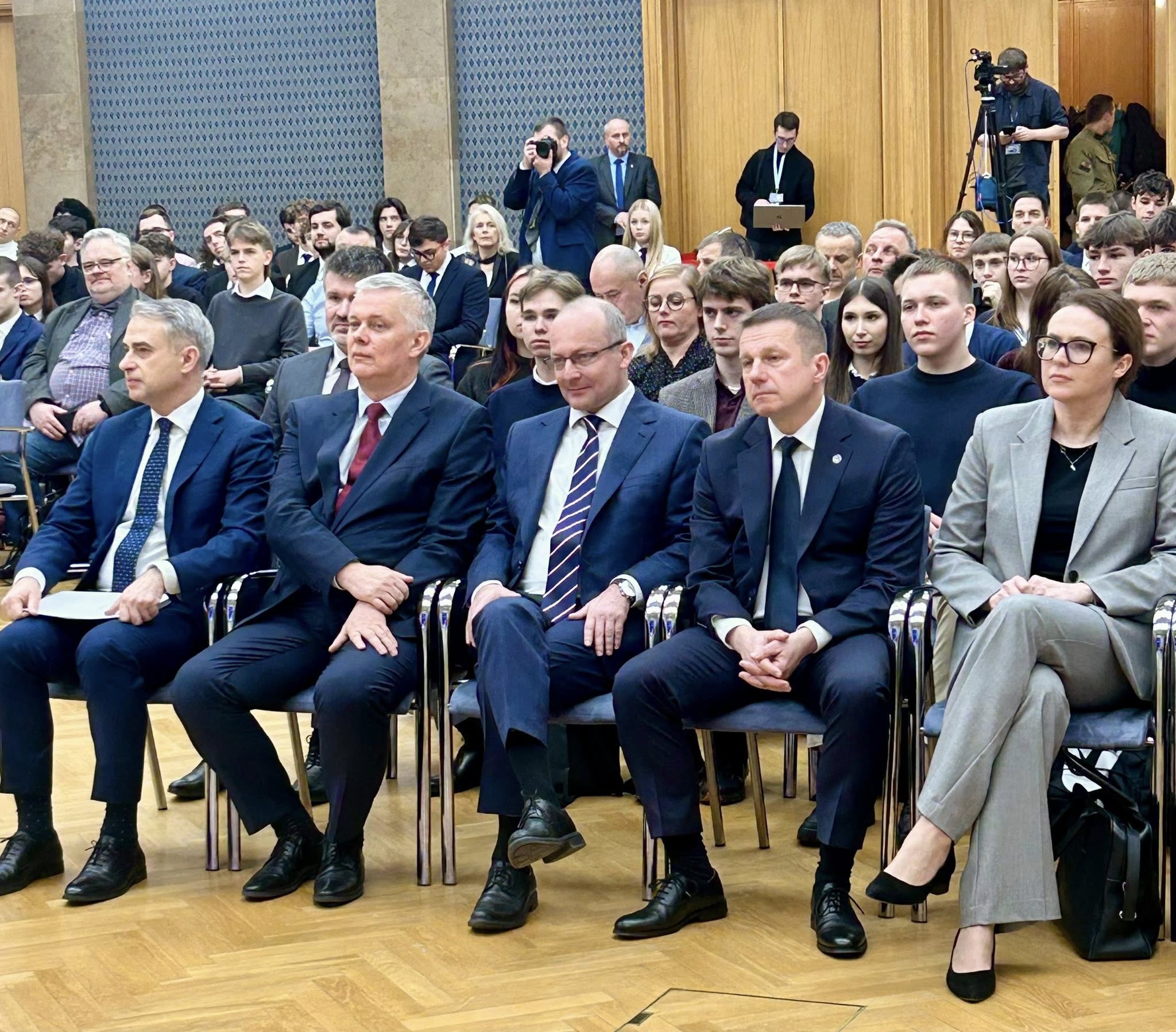 W dniu 8 grudnia 2025 roku w Kancelarii Prezesa Rady Ministrów w Alejach Ujazdowskich w Warszawie odbyła się gala finałowa konkursu informatycznego pn. "Broń się w necie". Na to wydarzenie została zaproszona delegacja naszego liceum w składzie Alex Malinowski-Goncalves, Maurycy Piotrowski i Krzysztof Zatke pod opieką nauczyciela informatyki p. Marka Kucyk-Urbańskiego. Nasi uczniowie awansowali do finału konkursu pracą multimedialną poruszającą tematykę radykalizacji postaw młodzieżowych w Internecie i głębokiej polaryzacji poglądów świata cyfrowego.