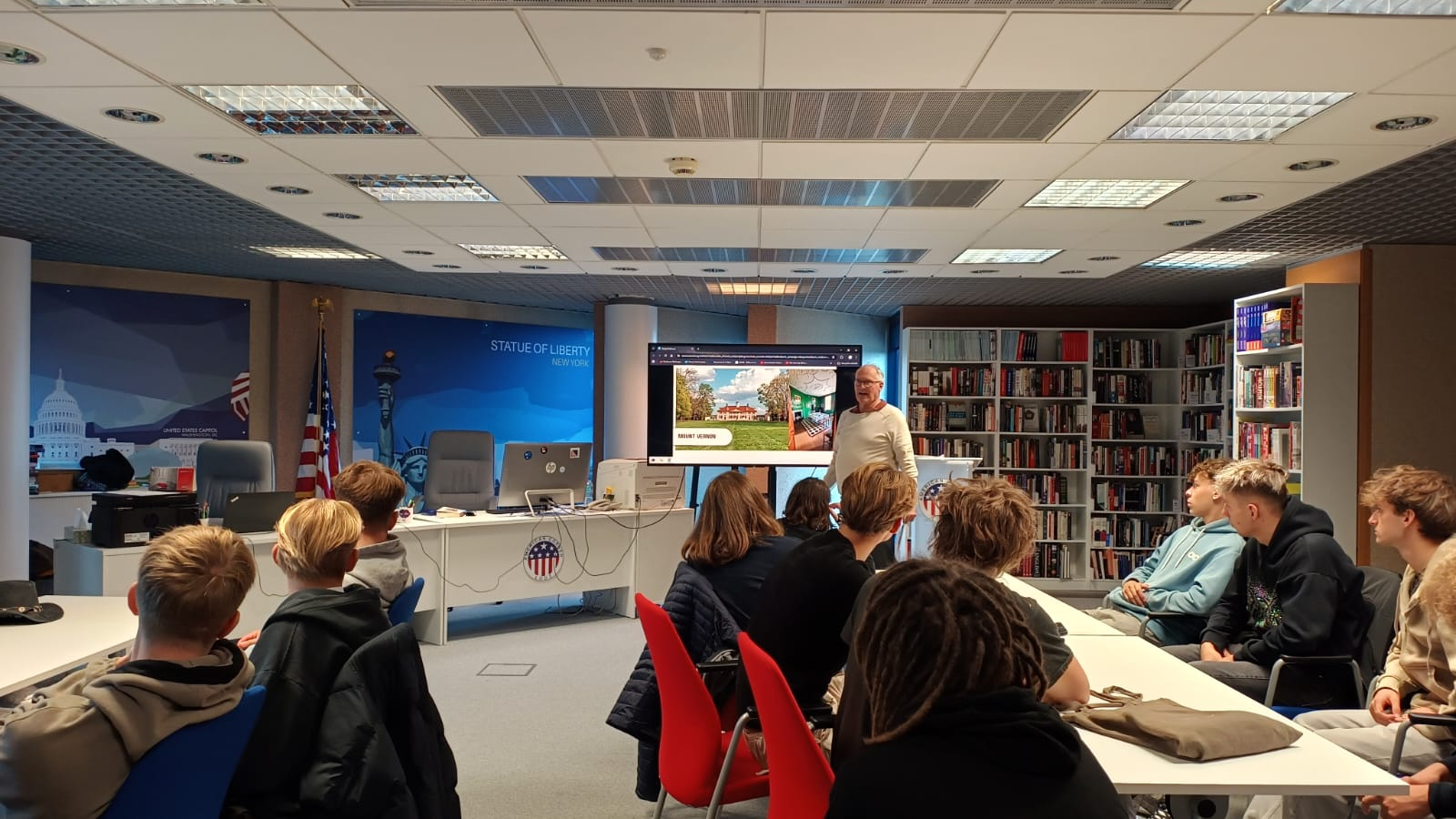 Dnia 1 października 2025 r. klasa 4c miała zaszczyt i przyjemność uczestniczyć w niezwykłej lekcji historii Stanów Zjednoczonych. Spotkanie poprowadził Craig Parkinson, emerytowany nauczyciel historii i wychowania fizycznego z Iowa.