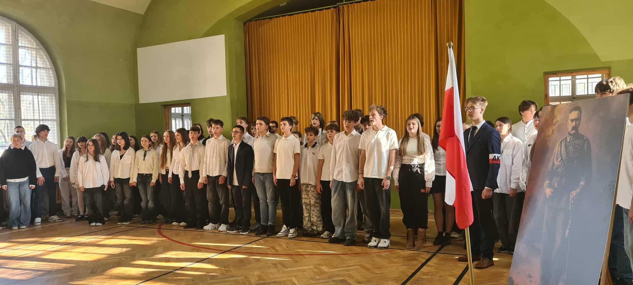 W kalendarzu polskich świąt państwowych jest jedno szczególnie bliskie społeczności XI LO w Łodzi, którego patronem jest Józef Piłsudski- to Narodowe Święto Niepodległości. W piątek 07.11.2025 roku o godzinie 11.11 uczniowie wspólnie z nauczycielami odśpiewali "Mazurka Dąbrowskiego", włączając się w kolejną edycję akcji "Szkoła do hymnu".